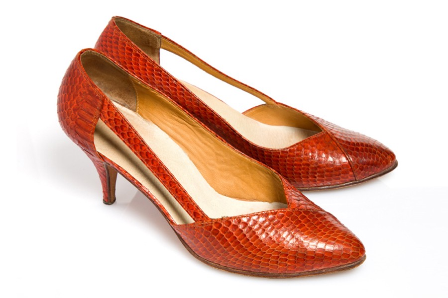 Snakeskin leather. Cut out vamp detail. Contrast leather lining. 2.5" heel. Made in Italy. - Additional Information