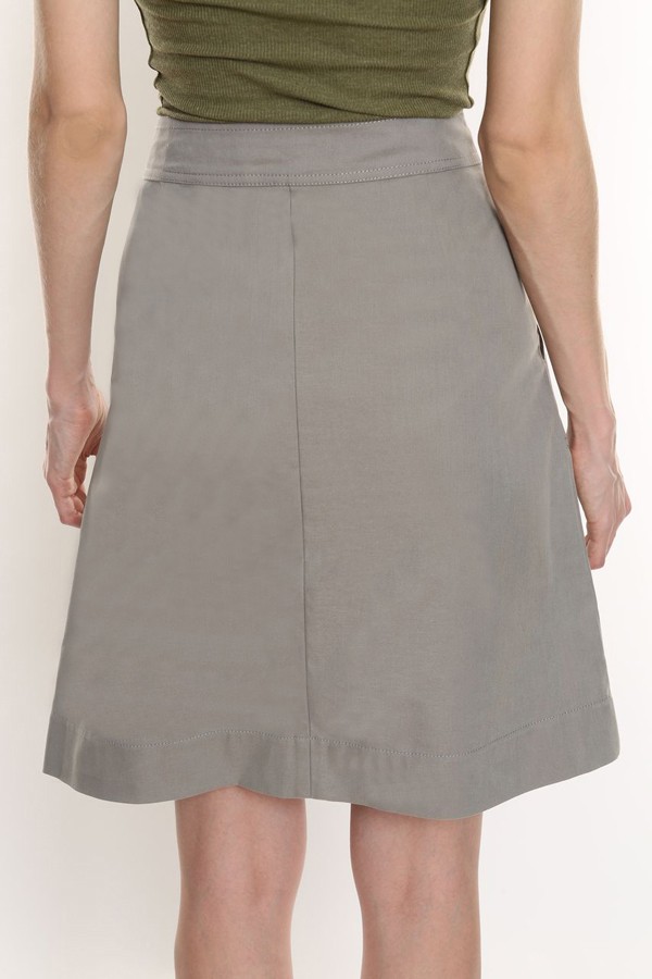 Cotton canvas a-line skirt with front button detail. 20" length. Available in Grey. Imported. Cotton. Machine Wash, Dry clean for best results. - Additional Information