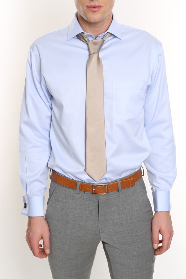French cuff button-front shirt with tapered collar. Imported. Available in Blue and White. Cotton twill. Machine wash. - Additional Information